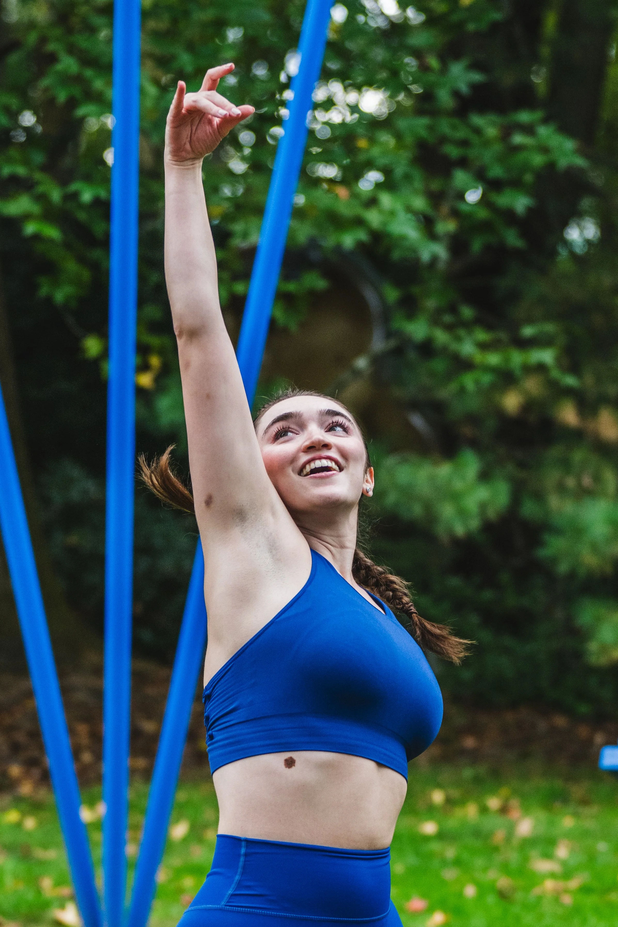 As a part of The Outlet Dance Project’s 2023 festival held at Grounds for Sculpture in Hamilton New Jersey, this piece was choreographed to capture the essence of being a child in a new place. And what better setting for this than Brooklyn-based Isometric Studio’s sculpture Cloud Swing, a grand cobalt blue whimsical swingset with wheelchair-accessible swings? After many visits and choreography sessions in various outdoor park spaces, this piece was created as a playful dialogue between body, space, swings, and momentum, all while inviting the audience to feel the effervescence of that new jungle gym they encountered when they were children. It’s a piece meant to spread and activate the visceral joy that seems to enter dormancy in our adult bodies. Joy is as timeless as that little rush at the undercurve of a swing in motion.
